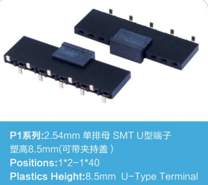 2.54排母 单排 塑高8.5 U端底部带凸 SMT度