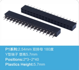 2.54排母 双排 塑高5.7 180度