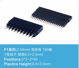 2.54排母 双排 塑高8.5 180度 Y端 加排针胶芯