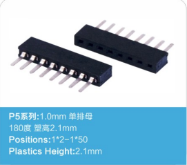 P5系列:1.0mm 单排母 180度 塑高2.1mm