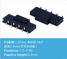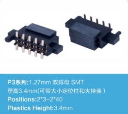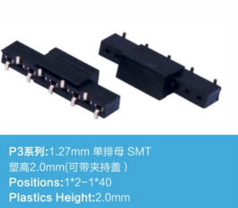 P3系列:1.27mm 双排母 SMT 塑高4.3mm(可带定位柱和夹持盖)