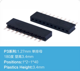 1.27排母 单排 塑高3.4 180度